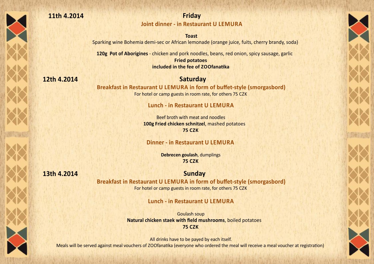 ZOOfanatika 2014 - menu