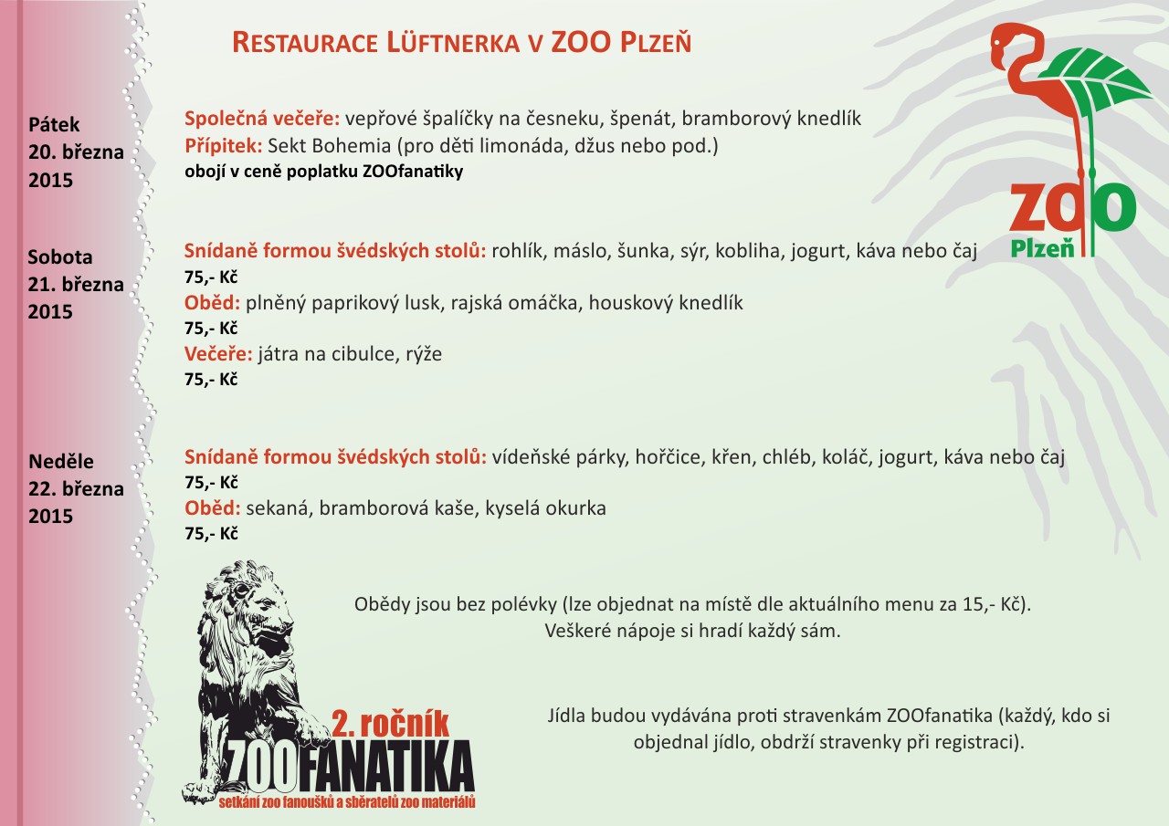 ZOOfanatika 2015 - jídelní lístek