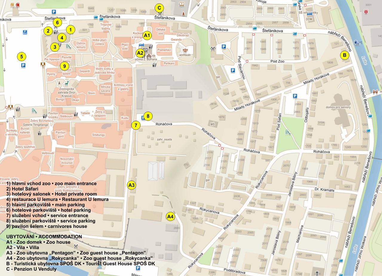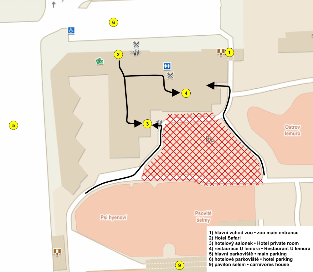 !!! za tečkou (•) je uvedeno místo konání; čísla v závorkách odpovídají číslům v obou mapách !!! PÁTEK 9. října 2020 09.00 - 10.00 ubytování • v zoo (A1-A4), Turistická ubytovna SPOŠ DK (B), Penzion u Venduly (C) 09.00 - 10.00 příjezd účastníků, registrace (každý obdrží identifikační visačku, program, stravenky...) • Hotelový salónek (3) 10.00 - 11.00 uvítání účastníků (MVDr. Přemysl Rabas); organizační informace (Roman Hynek), představení účastníků • Hotelový salónek (3) 11.00 - 12.00 oběd • Restaurace U lemura (4) 12.00 - 13.00 přednáška - "Nosorožci v letadle a ve zkumavce" (Jan Stejskal) • Hotelový salónek (3) 13.00 - 13.15 pauza 13.15 - 14.15 přednáška - "Jak je to s husou velkou a její cestou do Afriky?" (Michal Podhrázský) • Hotelový salónek (3) 14.15 - 14.30 pauza 14.30 - 15.30 přednáška "Etnografické stavby a prvky v evropských zoo" (Lukáš Nekolný) • Hotelový salónek (3) 15.30 - 15.45 pauza 15.45 - 17.00 fotopřednáška "Zoo Pobaltí (Litvy, Lotyšska a Estonska - 1. část" (Roman Hynek) • Hotelový salónek (3) 17.00 - 18.00 společná večeře (zahrnuto v ceně) • Restaurace U lemura (4) 18.00 - 19.00 fotopřednáška "Zoo Pobaltí (Litvy, Lotyšska a Estonska - 2. část" (Roman Hynek) • Hotelový salónek (3) od 19.00 přípitek (zahrnuto v ceně), seznamovací večírek, diskuze • Hotelový salónek (3) SOBOTA 10. října 2020 7.00 - 8.00 snídaně • Hotelový salónek (3) 8.00 - 11.30 prezentace a výprodej skladových zásob ostatních zoo (knihy, CD, DVD, hrníčky, výroční zprávy a další suvenýry a propagační materiály za zlomkové ceny - výprodej různých českých zoo), od 9.00 pro veřejnost • pavilon šelem (9) 9.00 - 11.30 sběratelská výměna zoo-materiálů (základní občerstvení v ceně) • Hotelový salónek (3) 11.30 - 12.30 oběd • Restaurace U lemura (4) 12.30 - 13.00 společné foto • bude upřesněno 13.00 - 16.00 komentovaná prohlídka ZOO (prohlídka bude ve 2 skupinách) • od hotelového salónku (3) 16.00 - 17.00 přednáška "Historie zoologických zahrad 6. díl - Novověk (od 1514)" (Roman Hynek) • Hotelový salónek (3) 17.00 - 18.00 večeře • Restaurace U lemura (4) od 18.00 aukce (dražba - předměty věnované sběrateli a další hodnotnější body - výtěžek bude použit na nosorožčí projekty) • Hotelový salónek (3) NEDĚLE 11. října 2020 7.00 - 8.00 snídaně • Hotelový salónek (3) 8.00 - 9.00 přednáška "Zoologická zařízení v Českých zemích a na Slovensku 3. díl - poválečné období" (Martin Vobruba) • Hotelový salónek (3) 9.00 - 9.15 pauza 9.15 - 10.15 přednáška "ZOO Liberec" - pozvánka na ZooFanatiku 2021 (bude upřesněno) • Hotelový salónek (3) 10.15 - 10.30 pauza 10.30 - 11.30 přednáška / beseda s významnou postavou Zoo Dvůr Králové (Pavel Holejšovský - pamětník, zaměstnanec zoo v éře Josefa Vágnera a externě dosud) • Hotelový salónek (3) 11.30 - 12.00 ukončení ZOOfanatiky • Hotelový salónek (3) 12.00 - 13.00 oběd • Restaurace U lemura (4) 13.00 odjezd domů, individuální prohlídka zoo nebo odjezd do Zoo Chleby • odjezd do Chleb z hlavního parkoviště (5) 13.00 - 14.30 cesta do Chleb 14.30 - ~16.00 prohlídka Zoo Chleby ~16.00 odjezd z Chleb MAPA: ![]() ![]() |