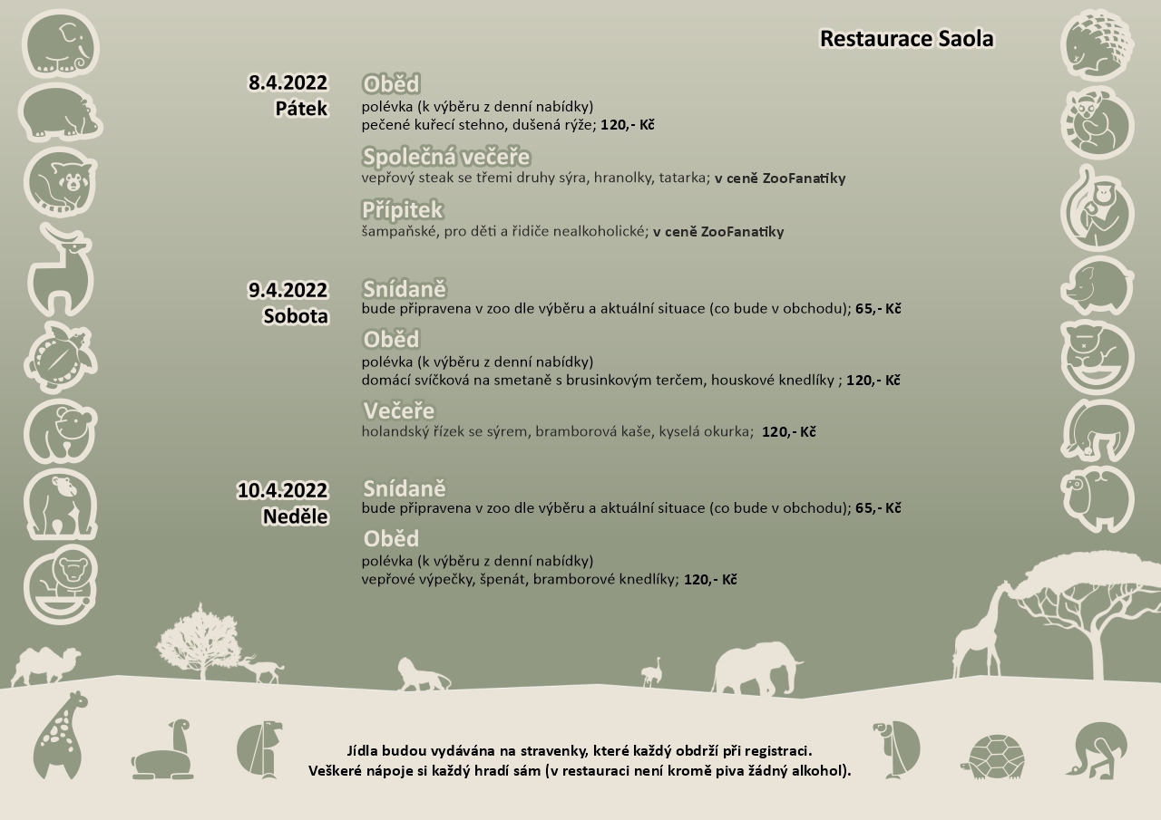 ZOOfanatika 2022 - jídelní lístek